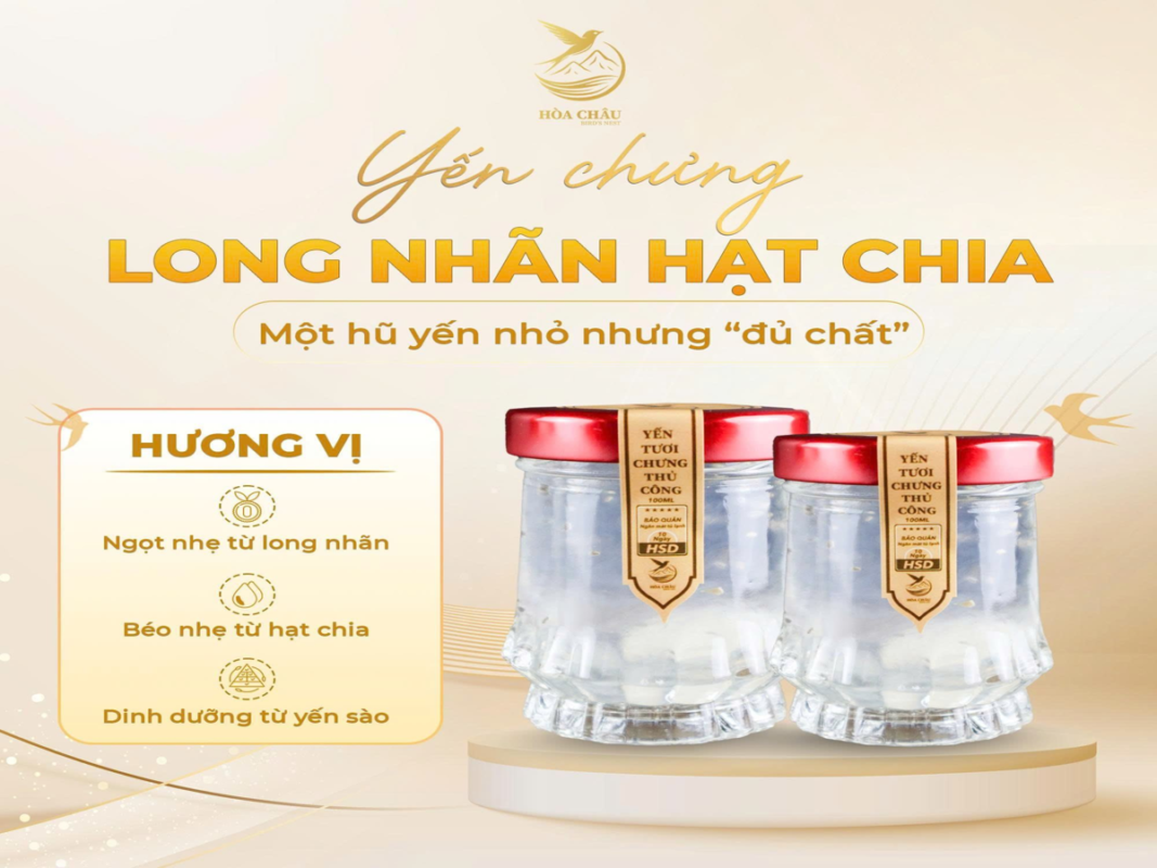 Trong hành trình chăm sóc sức khỏe bằng những giá trị từ thiên nhiên, món yến chưng long nhãn hạt chia không chỉ là một món ăn bổ dưỡng mà còn là sự kết hợp tinh tế giữa dinh dưỡng và nghệ thuật ẩm thực. Khi được chế biến từ nguồn tổ yến tinh chế Hòa Châu, món ăn này càng trở nên trọn vẹn hơn, mang đến cho mỗi gia đình một lựa chọn dinh dưỡng vừa tinh tế vừa an tâm về chất lượng.