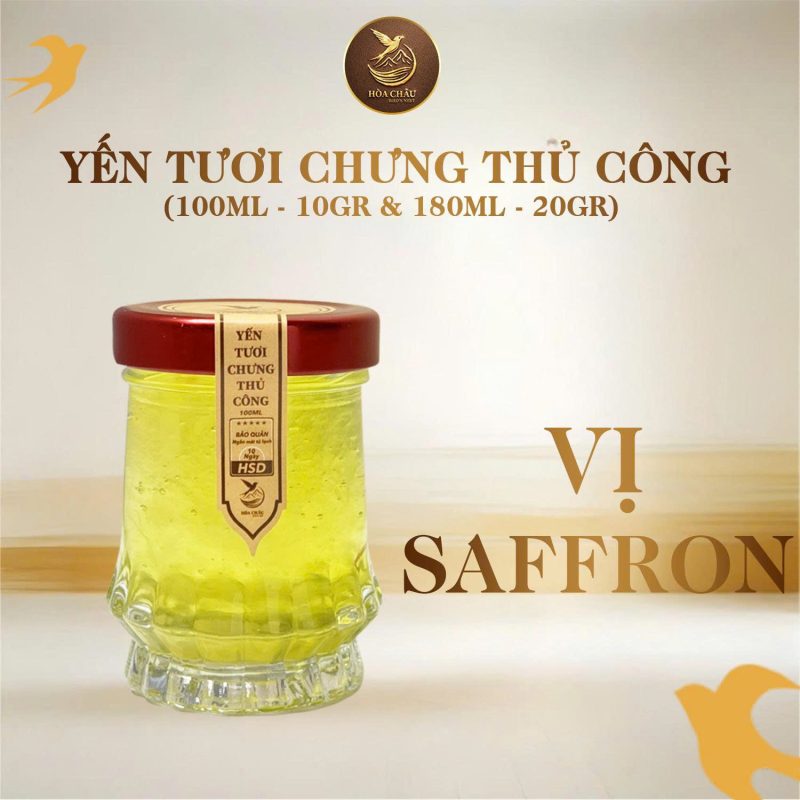 Tại Yến Sào Hoà Châu, mỗi hũ yến tươi chưng đều được chế biến theo phương pháp thủ công, kiểm soát kỹ lưỡng từng công đoạn nhằm giữ nguyên sợi yến mềm dai và hàm lượng dưỡng chất quý giá. Hương vị thanh nhẹ hòa quyện cùng saffron tạo nên cảm giác dễ chịu, phù hợp để sử dụng mỗi ngày.